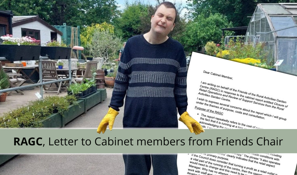 I am writing on behalf of the Friends of the Rural Activities Garden Centre (RAGC) in response to the cabinet report entitled Closure of Retail Operations and Review of Support Services from the Rural Activities Garden Centre.