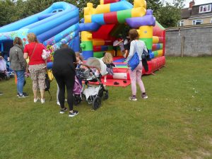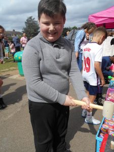 Visitors were invited to bring a picnic and enjoy the fun and games provided. A big attraction was the Bouncy Castle which could be accessed numerous times with the purchase of a £3 wristband – a bargain! Another popular purchase was the offer of ten 50p tokens for £5 which could be spent on the stalls. There was a huge variety of stalls. One which was very popular was selling tempting cakes where there were long queues. All the cakes had been donated by parents. The Ice Cream van was also very busy as was the Candy Floss Stall.