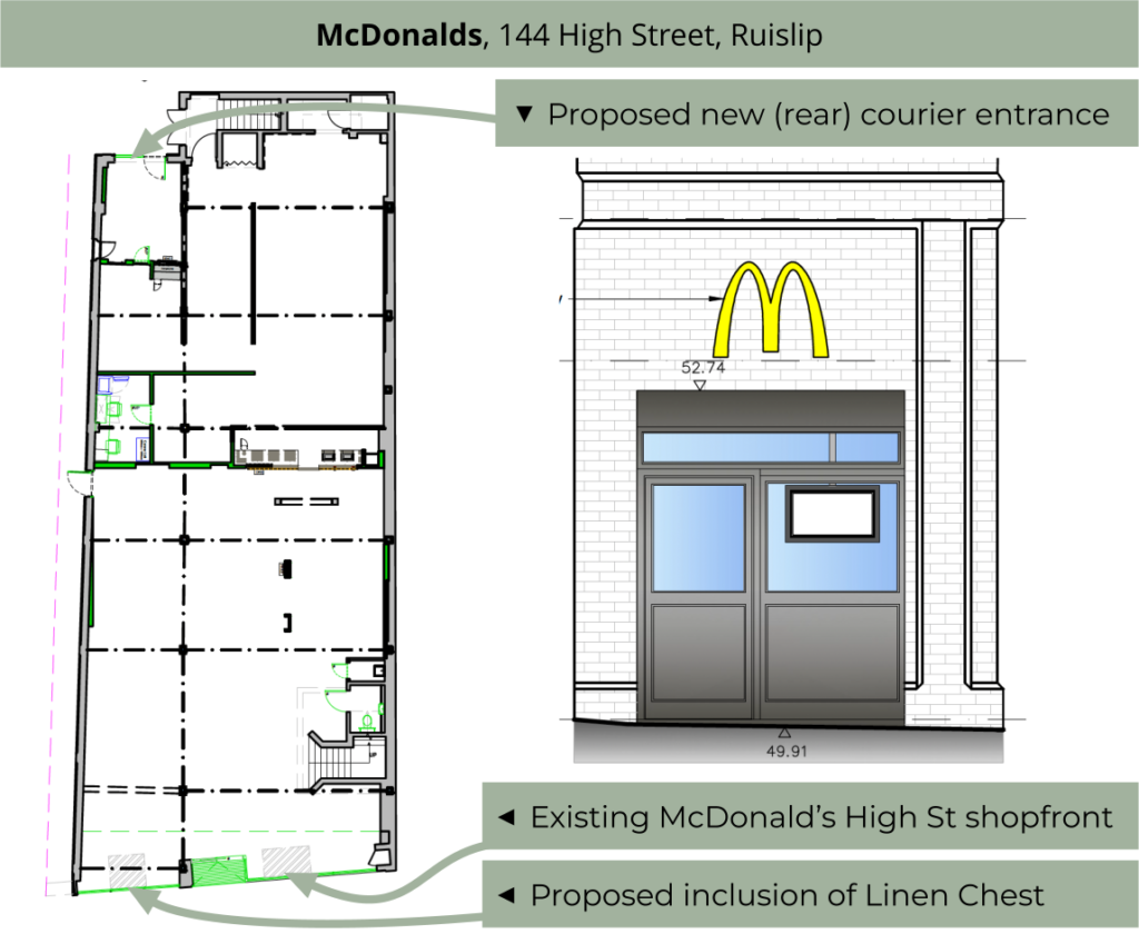 McDonald’s restaurant has been on Ruislip High Street for 30 years, employs 80 local people and regularly serves many more. This year they plan to extend their restaurant into the unit next door (previously The Linen Chest) and return it to work as a more “traditional” fastfood takeaway and restaurant configuration.