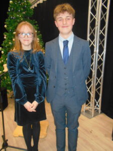 Immediately following the school’s Christmas Community Event on the afternoon of December 11th, visitors were escorted by sixth form students to the venue of the Winter Concert. An introduction was given by Year 11 students Charlie and Nicole who later also gave an excellent performance themselves of “Slow Dancing in a Burning Room” by John Mayer with Nicole singing accompanied by Charlie on the guitar. They continued to professionally introduce every performance throughout the whole concert. All the performers were smartly dressed in black with some even wearing bow ties!