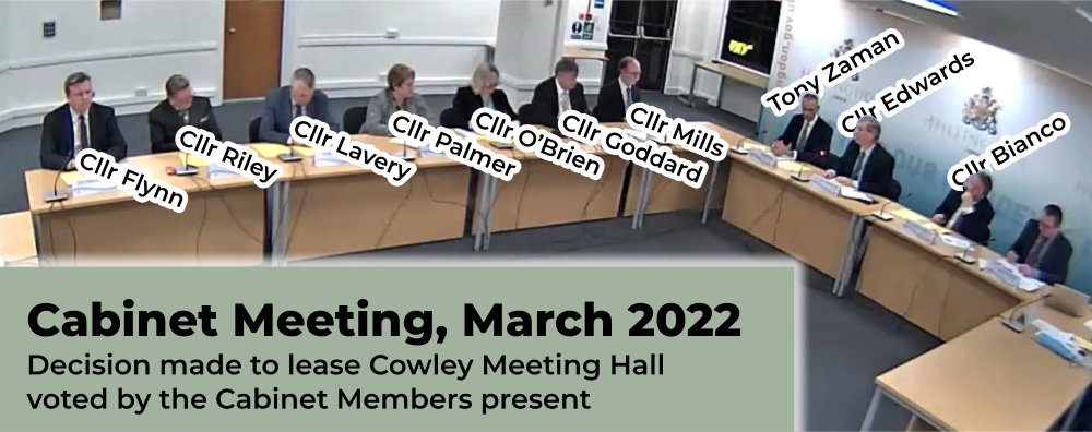The March 2022 Cabinet decision explicitly describes the lease as a renewal. Yet despite extensive searches of the Council’s published archives, no earlier decision relating to a lease for Cowley Meeting Hall can be found.