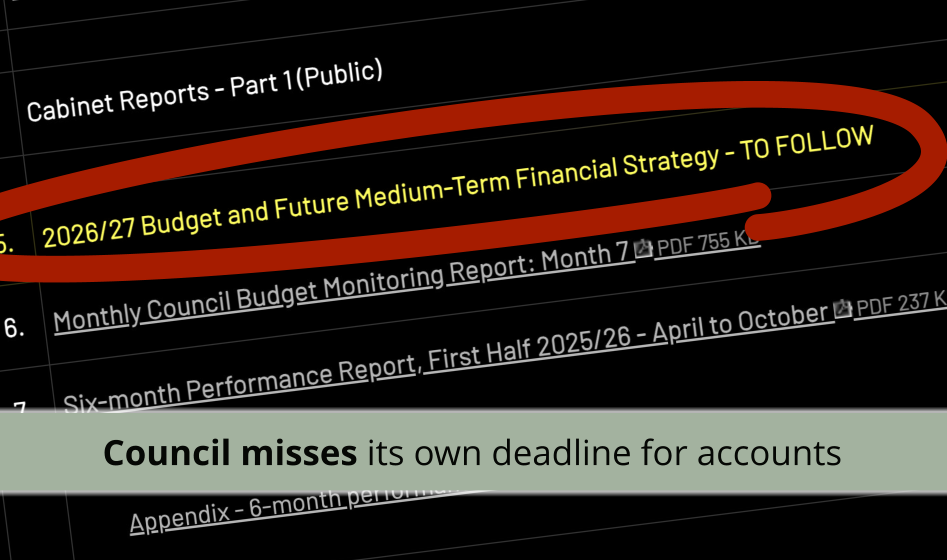 In November, the Monthly Council Budget Monitoring Report for Month 6 was not included in the papers when they were published ahead of the meeting on 20th November. Following that delay – by which time it was two days late – we wrote to the then-Cabinet Member for Finance Cllr Martin Goddard, the Head of Democratic Services and then-Monitoring Officer Lloyd White, the Chief Finance Officer Steve Muldoon and the Council’s Chief Executive Officer Tony Zaman to express our concerns and to ask why.
